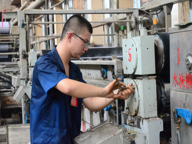 炎炎夏日里,人要時時注意防暑降溫,設備亦然。夏季車間溫度高,濕度重,對設備的維護保養(yǎng)要比其它季節(jié)更重要。一上班,面一車間設備人員李洪凱和師父韓海濤就開始了對車間印染設備的維護保養(yǎng)工作。清潔設備表面、檢查緊固零部件、檢查更換易磨損零件……內(nèi)容看似簡單,但只要把這些簡單的基礎性保養(yǎng)工作做好,就能大大減少設備的檢修工作量和檢修次數(shù),保障設備的順利運行。