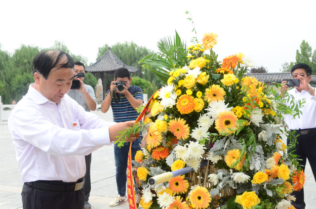 向周恩來總理骨灰撒放地紀念碑敬獻花籃,拜謁紀念碑。
