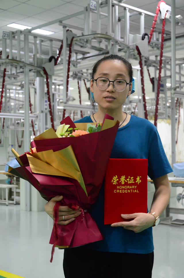 家紡成品車間勞動競賽總結(jié) 優(yōu)秀員工捧起大花束