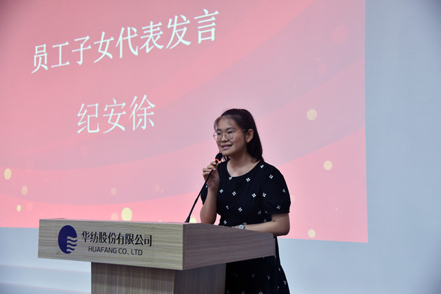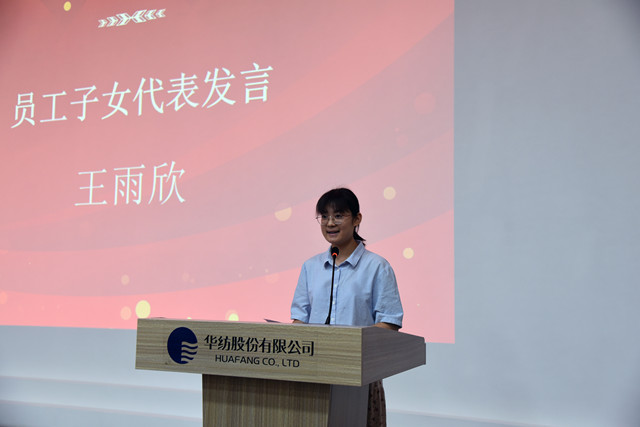 員工子女代表紀(jì)安徐、王雨欣在發(fā)言中,對(duì)家庭和公司表達(dá)了感激之情,并結(jié)合自身的學(xué)習(xí)情況談了個(gè)人的感受和對(duì)未來(lái)的憧憬。營(yíng)銷(xiāo)管理部部長(zhǎng)楊霞作為家長(zhǎng)代表發(fā)言,她表示,公司對(duì)員工家庭的關(guān)心,讓大家深深感受到華紡大家庭的溫暖,也享受到了公司發(fā)展的成果。