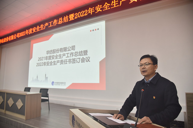 2月10日,公司召開春節(jié)長假后的“第一會”,主題為總結2021年度安全生產管理暨簽訂《2022年安全生產責任狀》。會議由總經理閆英山主持,副總經理、安全總監(jiān)孫中然對安全生產工作進行了總結與部署。黨委副書記、董事長盛守祥分別與閆英山、孫中然簽訂《2022年安全生產責任狀》;總經理閆英山分別與面料車間主任曹劍、花布車間主任劉國鋒、家紡車間主任王旭洲、家紡成品車間主任董魯波、服裝車間主任晁金光、熱力公司經理劉新利、動力公司經理秦鴻章簽訂《2022年安全生產責任狀》。盛守祥圍繞企業(yè)安全生產與整體發(fā)展的重要關系,做了重要講話。
