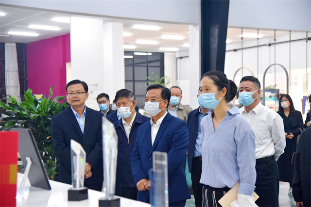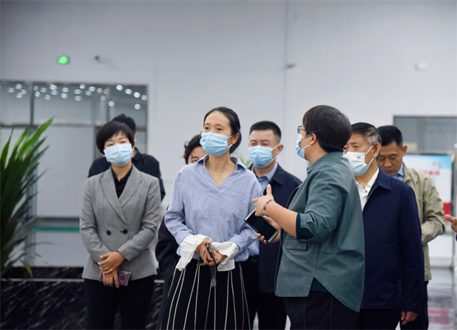 楊菡一行首先參觀了公司智云中心、服裝面料公司、花布公司、家紡公司、創(chuàng)意中心、工程技術(shù)研究院等,盛守祥向楊菡一行介紹了公司整體發(fā)展、智能制造、轉(zhuǎn)型升級等情況。