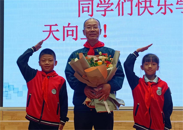 在課堂結(jié)束后的采訪環(huán)節(jié)中,同學(xué)們踴躍提問,趙奇生回答了同學(xué)們的問題并且鼓勵同學(xué)們“學(xué)習(xí)如逆水行舟,不進則退,要不斷學(xué)習(xí),不斷進步。”活動最后,學(xué)生代表為趙奇生戴上紅領(lǐng)巾并向他獻花。