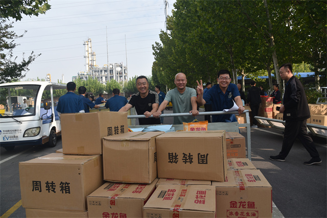 金秋送福,丹桂飄香。為了讓每位職工能感受到公司給予的溫情,同時也為了感謝大家的辛勤付出和努力,9月26日,在中秋、國慶雙節(jié)來臨之際,公司為廣大在職員工及退休職工準(zhǔn)備了月餅、花生油、大米、小米等節(jié)日慰問品,以體現(xiàn)公司對廣大員工的關(guān)懷之情。