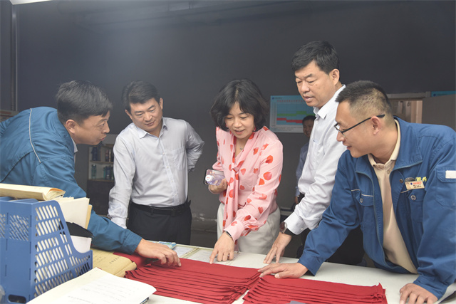 考核組一行先后到公司智云中心、檢測(cè)中心、綜合辦公區(qū)、服裝面料分公司、家紡分公司、花布分公司、研究院、王魯剛創(chuàng)新工作室進(jìn)行實(shí)地參觀考察。座談會(huì)上,與會(huì)人員觀看了企業(yè)宣傳片,詳細(xì)了解公司產(chǎn)品優(yōu)勢(shì)、產(chǎn)品研發(fā)、經(jīng)營(yíng)銷(xiāo)售等情況。孫玉濤就公司發(fā)展歷史、生產(chǎn)制造、科技創(chuàng)新、人才培養(yǎng)、未來(lái)規(guī)劃等方面作情況介紹??疾旖M聽(tīng)取了公司開(kāi)展全員創(chuàng)新工作專題匯報(bào),匯報(bào)主要從公司技術(shù)創(chuàng)新、理念創(chuàng)新、協(xié)調(diào)體系創(chuàng)新等層面展開(kāi),同時(shí)查看公司了創(chuàng)新工作檔案,并給予了指導(dǎo)性的建議。張艷麗指出,全員創(chuàng)新企業(yè)是群眾性的創(chuàng)新活動(dòng),華紡股份在引導(dǎo)鼓勵(lì)職工立足本職崗位、激發(fā)職工創(chuàng)新熱情和創(chuàng)造活力、提高職工自主創(chuàng)新能力、培育激勵(lì)工匠人才、推動(dòng)企業(yè)科技進(jìn)步和新舊動(dòng)能轉(zhuǎn)換等方面發(fā)揮了重要作用,希望華紡股份繼續(xù)提高產(chǎn)業(yè)承載能力和市場(chǎng)競(jìng)爭(zhēng)力,動(dòng)員激勵(lì)廣大企業(yè)職工全面參與創(chuàng)新,全面提升全員創(chuàng)新工作,推動(dòng)企業(yè)經(jīng)濟(jì)實(shí)現(xiàn)高質(zhì)量發(fā)展。