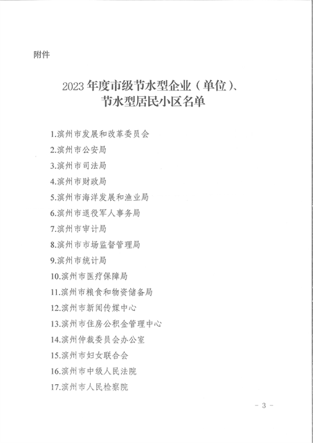 近日,濱州市城鄉(xiāng)水務(wù)局、濱州市發(fā)展和改革委員會、濱州市工業(yè)和信息化局、濱州市住房和城鄉(xiāng)建設(shè)局、濱州市機(jī)關(guān)政務(wù)保障中心發(fā)布了《關(guān)于公布2023年度市級節(jié)水型企業(yè)(單位)、節(jié)水型居民小區(qū)評價結(jié)果的通知》,經(jīng)綜合評價,公司達(dá)到市級節(jié)水型企業(yè)(單位 )、節(jié)水型居民小區(qū)標(biāo)準(zhǔn)要求,獲評2023年度濱州市節(jié)水型企業(yè)。