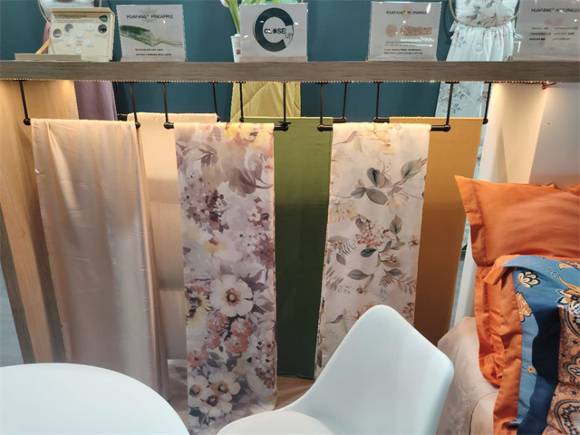此屆法蘭克福家紡展,華紡股份家紡分公司打造了以“Green world”為主題,以綠色環(huán)??沙掷m(xù)的特色纖維產(chǎn)品為主材質(zhì),研發(fā)了醋酸系列/真橙系列/木棉系列/絲質(zhì)系列/超柔系列/麻系列六大系列產(chǎn)品,從材質(zhì)、功能、膚感、科技、花型、款式等多方面對產(chǎn)品進行了融合升級,吸引了來自法國、意大利、葡萄牙等諸多國家的客戶進入展位進行咨詢洽談!其中,迎合歐洲市場喜好的亞麻、漢麻提花、色織簡約條紋產(chǎn)品也成功吸引了來自歐美的客戶。