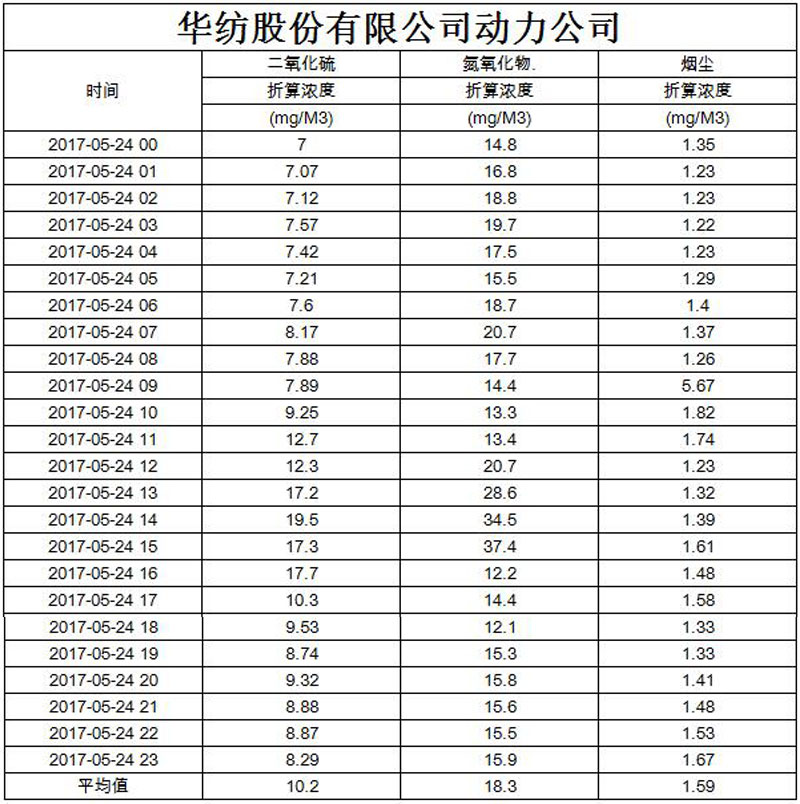 煙氣排放數(shù)據(jù)信息公開2017.5.24數(shù)據(jù)