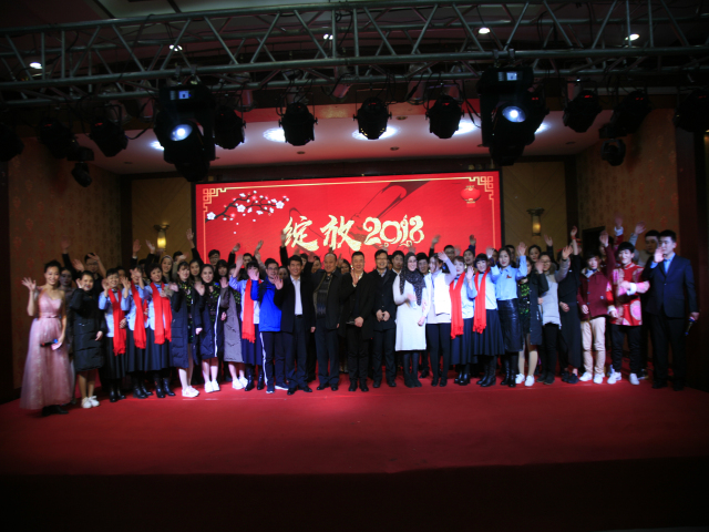 晚會結(jié)束后,公司總經(jīng)理閆英山等公司領(lǐng)導與參加演出的員工合影;來自突尼斯的天津工業(yè)大學見習生琺嘟娜受邀登臺,參加了合影。