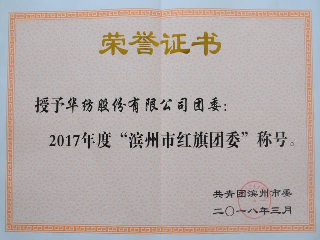 導(dǎo)讀:日前,共青團濱州市委對2017年度共青團工作先進集體和個人進行了表彰,公司團委獲得了2017年度“濱州市紅旗團委”稱號。